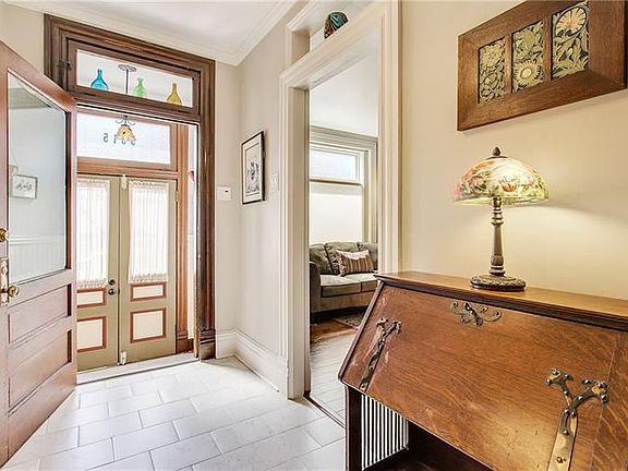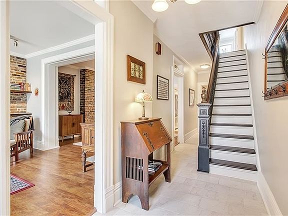 Modern renovation with original charm! This home has been lovingly restored and has all of the conveniences of a new home but with original details. The spacious entry welcomes you with a vestibule and view of the beautiful woodwork on the staircase. The living room as exposed brick wall and gorgeous fireplace mantel with built in shelving and gas insert. Follow into the dining room with more exposed brick, crown moulding and great space to entertain. Next is the kitchen with stainless appliances and an abundance of counter space & cabinetry. Behind the kitchen is an office or the 3rd bedroom with a first floor powder room. The second floor has a large master bedroom with generous walk-in closet, another bedroom, full updated bathroom and 2nd floor laundry room. Head downstairs to the basement for a nice surprise - attached one car garage and an abundance of storage space. There is enough space in the driveway to fit 2 additional cars. Lovely patio on the side of the garage.