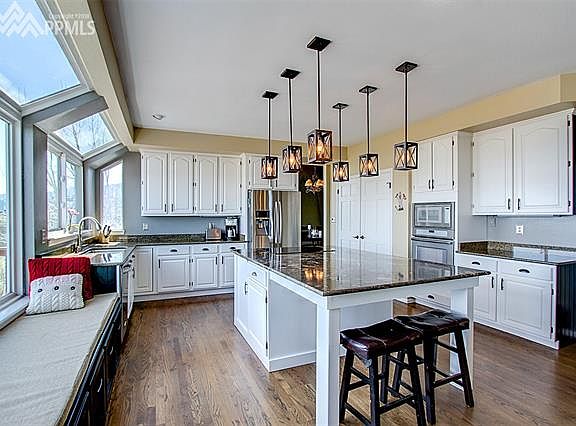 Views! Views! Views! Built on a 1 acre lot, this Beautiful Executive Home Stands Above Colorado Springs with Views of the City, Mountains and Beyond! Have Family and Friends over to Enjoy the 36 x 12 Deck to take in the Views Along with Many of the Rooms Throughout the Home! Kitchen Boasts Granite, Large Pantry and Island, and Stainless Steel Appliances. This Home has been Extensively Updated with Bathroom Remodels, Tile Roof, Hardwood Floors, 6 Panel Doors, AC, Multiple Ceiling Fans, Updated Carpet, New Fixtures/Hardware