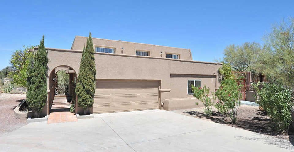This incredible 5 bedroom, 4 bathroom, home is located on almost an acre. The resort like yard has multiple sitting areas and gazebos surrounding the large lap pool.The yard also has gorgeous plants and fruit trees.Incredible mountain views. Very bright home with views out of all windows.Kitchen has granite countertops,cooktop,built in oven and microwave. Two fireplaces. Travertine tile throughout downstairs. One bedroom with bathroom located downstairs. Large laundry room. Enjoy two family rooms. Master suite is gorgeous with glass shower, travertine countertops and mirrored wall. Every bedroom is oversized for comfort.Plenty of room for parking to the left of the driveway and an easy turn around area.Located in the foothills near shopping, resorts, golf,UofA, upscale shops and hospitals