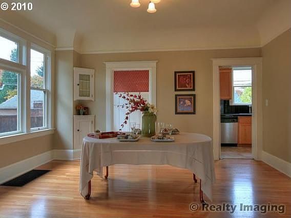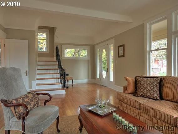 Beautifully restored foursquare! Refinished oak & fir floors, large living rm w/FP, formal dining rm w/blt-ins, den/office, updated kitchen w/granite counter & eating area, fresh paint in & out, walk-up 3rd flr, coved ceilings & original molding, great natural light, full front porch, alley access to garage.