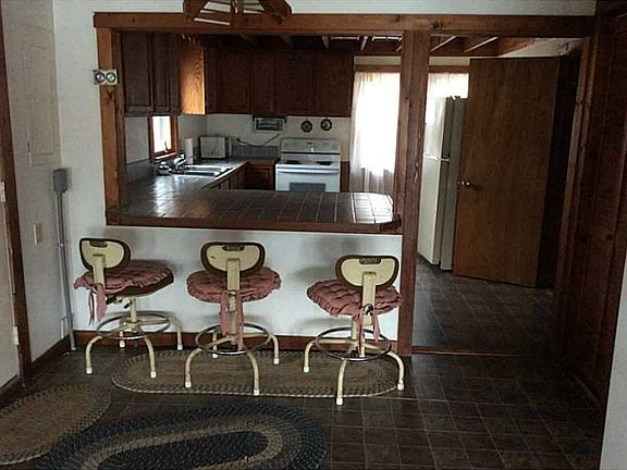 Splash & Play. Fish & Stay year around in this low maintenance home with newer roof, water heater, furnace & A/C unit. Large living room complete with a gas fireplace & spacious loft areas are perfect for you and your guests. Breathtaking view of lake from living room and wrap around deck. Beautiful landscaping complete with nice trees and spring flowers on this double lot. Perfect for those outside parties. Plenty of parking and room to add a garage.