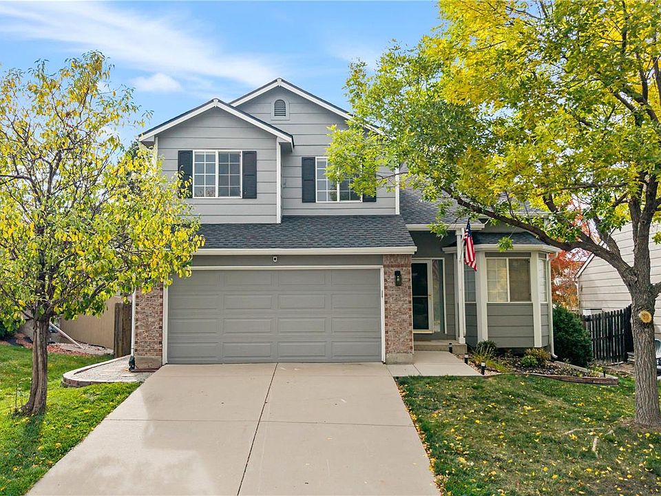 Welcome to this beautifully updated two-story home in the desirable Saddle Rock Ridge community. Bright and open with vaulted ceilings and modern finishes, this home offers the perfect blend of comfort and functionality. The main level features LVP flooring throughout, creating a seamless flow from the spacious living area into the inviting family room, where a cozy fireplace adds warmth and charm. The dining area connects the family room and kitchen, with sliding doors leading out to the private backyard and patio - ideal for entertaining or relaxing outdoors. The kitchen is designed for both everyday living and hosting, featuring sleek quartz countertops, stainless steel appliances, and a generous island for meal prep or casual dining. A convenient powder room and laundry room complete the main floor. Upstairs, the primary suite offers a bright and spacious layout with an en suite five-piece bathroom that includes a soaking tub, separate shower, dual sinks, and quartz countertops. A large walk-in closet provides ample storage and completes the space. Three additional bedrooms and another full bathroom provide plenty of space for family, guests, or a home office. The finished basement offers a spacious bonus room - perfect for a family/media space, gym, play area, or home office. The private backyard features a spacious deck, perfect for outdoor dining or weekend gatherings. Surrounded by mature landscaping, it offers a comfortable space to relax and unwind. Conveniently located near parks, trails, shopping, and dining—with access to top-rated Cherry Creek schools - this home combines modern comfort with an ideal neighborhood setting. **2025 appliances, interior and exterior paint, roof, furnace**