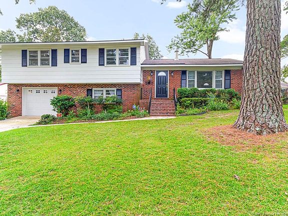 Beautiful 4 Bedroom Tri Level home is located in a Cul De Sac within minutes of Fort Bragg, Shopping, Restaurants and much more. The main level you have living/sitting room with a large picture window and wood stove for those cold winter nights. Large dining area open to the kitchen. U Shape Kitchen has white open shabby chic cabinets. Large farm sink, Stainless Steel Appliances and plenty of counter space. From the dining room you can access the back yard that has 2 tier deck with built in sitting. Downstairs, bottom level you have a large open area to use as you please, laundry and half bathroom combine along with access to the garage. Sliding Glass opens to a concrete patio and access to the 2 tier deck, fenced backyard and shed. Upper floor from main level shows off the hardwood flooring in all the bedrooms. Primary bedroom has own bath, dual sinks, gorgeous custom tile surround tub/shower w/ rainfall shower head. 3 other bedrooms are on the same floor with a full bathroom.