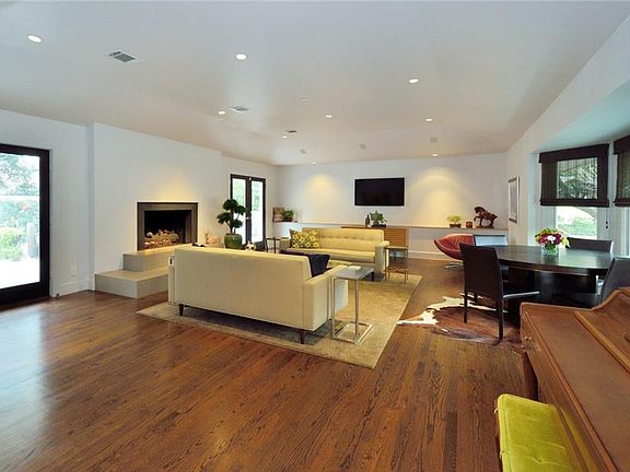 Beautifully renovated, soft contemporary home near prestigious West Highland Park! Single-level living with 2 very spacious bedrooms, a large flexible living-dining space, study nook, attached garage & an underground storm shelter that makes for the ultimate conversation piece! Upscale amenities incl. hardwoods throughout, gas fireplace, quartz kitchen countertops, Thermador stainless appliances & integrated sound speakers. An attractive outdoor patio is easily accessible from the living area & kitchen. 2012 replacement of the roof, HVAC, water heater, landscaping & sprinklers -- plus kitchen+bath remodels. Desirable central location close to H.P. & Inwood Village shopping & dining, the Tollway and Love Field!