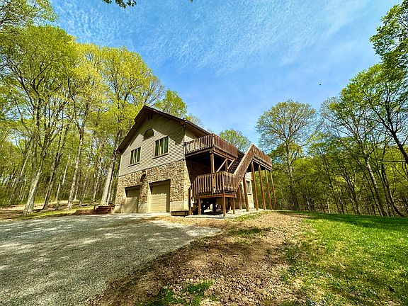 Nestled on top of a hill among the trees, this 3 bedroom/2.5 bath is private and serene. Gorgeous hardwood floors, vaulted ceilings, cozy fireplace and 14+ acres to hunt, ride atv or explore. With an open floor plan, this home is easy for indoor and outdoor entertaining with huge panoramic views of the woods. Plenty of space to build a barn. A must see!