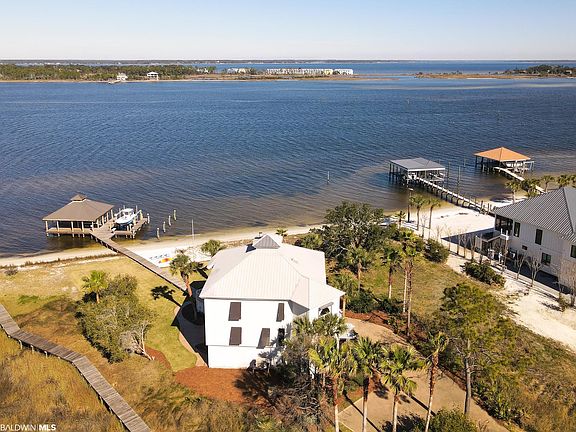 Waterfront living at it's finest! This stunning 5BR / 5BA home located on the desirable Ono Island ticks all of the boxes! Bring your boat and take advantage of the large boat dock with boat lift. Spend your days on the water or relaxing in the sun on your private beach. The custom built home provides ample space for entertaining friends and family. The open floor plan with vaulted ceilings in the main living area takes advantage of all the natural light that flows throughout the property. Relax by the fireplace while you take in the beautiful water views. Following on from the living area you will find the spacious kitchen featuring light coastal colors keeping it light and bright. On this level you will also find the primary bedroom completed by the master bathroom with soaker tub, separate shower and double vanity. This level also provides two additional bedrooms with stunning water views. Continuing up to the third level you'll find a bunk room and a bright and airy sunroom perfect for your morning coffee. On the ground level of this property you will find a bedroom, bathroom, utility room, attached garage and large double bunk room complete with a lounge area. This property really does have it all! Beautifully landscaped throughout so all the hard work has been done! Schedule your showing today and be sure not to miss out on this gem!