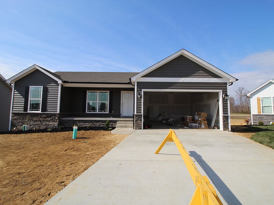 This is a CUSTOM home! Premier Homes of Southern Indiana is proud to present the beautiful 'Ayden' floor plan! Nestled on a quiet cul-de-sac, this gorgeous 5 Bed/3 Bath home features a covered front porch, spacious great room with 10' ceiling, engineered hardwood flooring, open floor plan, split bedrooms, and first floor laundry room with pocket door. Beautiful eat-in kitchen with quartz countertops, farm sink, pantry, and roomy breakfast nook with french doors that walk out to back covered deck, which is perfect for relaxing or entertaining! Tranquil master suite offers elegant trey ceiling, spacious walk-in closet, and master bath with double vanity, water closet, and large walk-in tile shower. Full, finished walkout basement features 2 additional bedrooms, full bath, large storage room, and huge family room with french doors that walk out to back 12x10 patio. This home also includes a 2 car attached garage with keyless entry and a 2-10 home warranty! Builder is a licensed real estate agent in the state of Indiana.