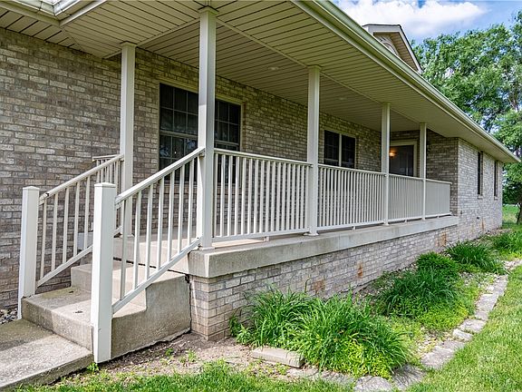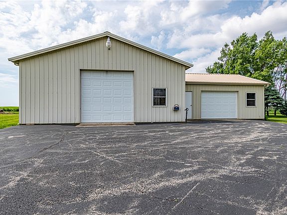 Custom, 1-owner ranch, 6 inch walls. Asphalt drive leads to tree studded 5 acres. Front porch for enjoying shade, or TREX deck and patio in back for enjoying BBQs and sunshine. Inside, you will find a great floor plan, 6 panel doors, oversized garage. Fully equipped cook's kitchen boasts ample work space, super sized walk in pantry. Master with ensuite - BIG walk in, tub/ separate shower. Main floor laundry, washer & dryer stay. Whole house generator is a must for country living. 2 car + garage has pull down stairs, and wide, easy access stairs to unfinished poured basement with tall ceiling, egress window. Hi effic HVAC. Reverse osmosis water system stays, and propane tank is owned. 1766 sq outbuilding with 12' tall door,(opener), west part is heated & insulated also with opener, and has a water spigot right outside. Building is perfect for big toys, the hobbyist, or home business workshop. Per County- zoned AG.