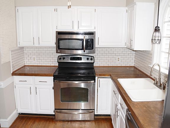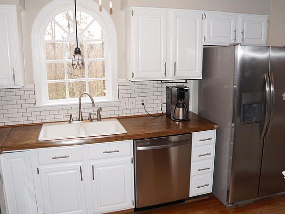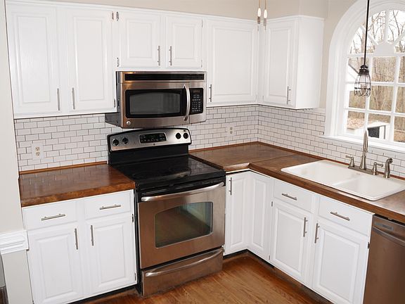 Charming white picket fence home in Knightdale with downstairs master! Stainless appliances in kitchen with subway tile backsplash. Brand new dishwasher and 1 year old refrigerator. Bay window in dining area. Wood burning fireplace in family room. Glowing hardwood floors throughout, and ceramic tile in both baths. Downstairs master features walk-in closet with built-in shelves and dual sink vanity in master bath with brand new faucets and shower faucet. Brand new Delta plumbing fixtures in upstairs bath, brand new toilets in both baths. House has a sewer ejector pump. Deck in back overlooks fenced yard which backs to a permanent natural area unbuildable wetlands. Privacy, nearly a half acre lot. Play equipment, sheds, and all appliances - fridge, washer & dryer convey. No HOA!