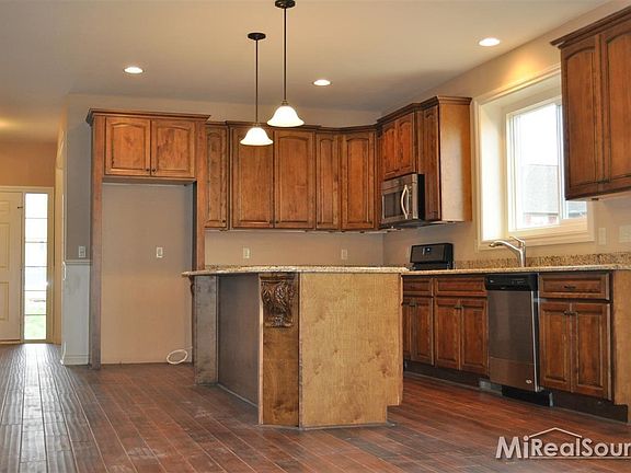 NEW CONSTRUCTION.KIT W GRANITE CTOPS, MAPLE CABS, LRG ISLAND, PANTRY, LRG EATING AREA. BUTLERS PANTRY CONNECTED TO DINING ROOM. GREAT RM W GAS FIREPLACE AND GRANITE SURROUND. MSTR SUITE W WALKIN CLOSETS, PRIVATE BATH W CORNER JAC TUB, SHOWER STALL, DOUBLE VANITY. LARGE MAIN BATH W CERAMIC TILE, GRANITE CTOPS. BATHROOMS W WALKIN CLOSETS, EXTRA SITTING AREA UPSTAIRS. LARGE FINISHED BASEMENT W KITCHENETTE, 1/2 BATH, CARPET.
