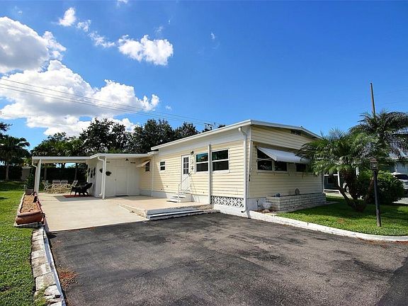 Welcome to your charming and fully-furnished mobile home nestled in the heart of a vibrant community! This delightful 2-bedroom, 1 bathroom residence offers a warm and inviting atmosphere with its open floor plan and waterproof vinyl flooring throughout most of the home. Enjoy the convenience of a carport and additional parking space for two cars in the driveway. Dive into relaxation with the heated pool or gather with friends at the clubhouse with kitchen facilities. The community boasts amenities like shuffleboard courts, billiards/card room, horseshoe pits, bocce court, laundry room, library, and a mail center. For added convenience, there's RV and boat storage available for an extra fee. Entertainment options are endless, ranging from bingo, crafts, and cards to holiday parties, dances, and dinners. Take part in coffee hours, pancake breakfasts, ladies' luncheons, and potluck dinners. Join golf and bowling leagues for some friendly competition. The location is ideal, just minutes away from some of the world's most famous beaches, numerous restaurants, and 15 minutes to Sarasota Bradenton International Airport. Tampa International Airport is a short 45-minute drive away, along with the UTC Mall and St Armands Circle. Don't miss the opportunity to make this vibrant community your new home!