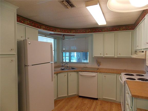 All appliances stay, some of the furniture stays. Kitchen is open to living room and dining room. Large master bedroom with 4 piece master bath. Mostly wood vinyl flooring throughout. Nice corner lot. Lowest priced double-wide in the area.