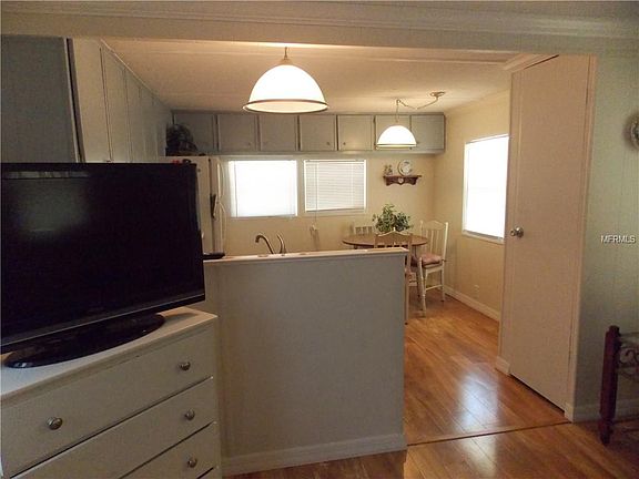 Cute single wide that is nicely decorated. Living room opens to kitchen with loads of cupboard space. Wood laminate floors through except bath. Second bedroom used as office. Large master bedroom with ample closet space. Bright and cheery 4 piece bath with stack-able washer and dryer. 8x12 shed. Thermopane windows and roof over. Large carport. Everything stays.