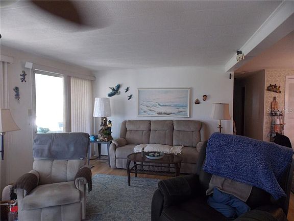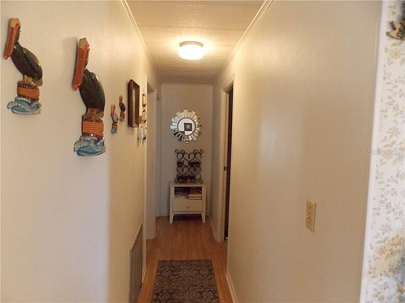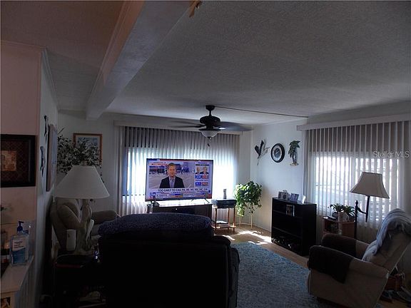This corner lot is well landscaped and manicured. Exterior is vinyl sided with double pain windows. There is a roof over, new A/C 2/2020, and parking for 3 cars and a gulf cart. Interior has open floor plan from the dining room to living room. Kitchen has 2 year old stainless appliances. The lanai is a cozy place for morning sun and coffee. Here is the best part, 2 good size bedrooms and 2 bathrooms. Main bath has updated tub/shower and tile floor. Master bedroom has walk-in shower. Both bedrooms have large closet space.