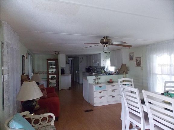 This 2 bedroom, bath and a half offers vinyl floors through out. Kitchen with double sink and loads of cupboards. There is an updated main bath with shower. The washer and dryer are off the kitchen. There is a furnished lanai with storage, 2 ceiling fans and a window A/C unit. The exterior is vinyl sided with updated windows. Roof over was done in 2015.