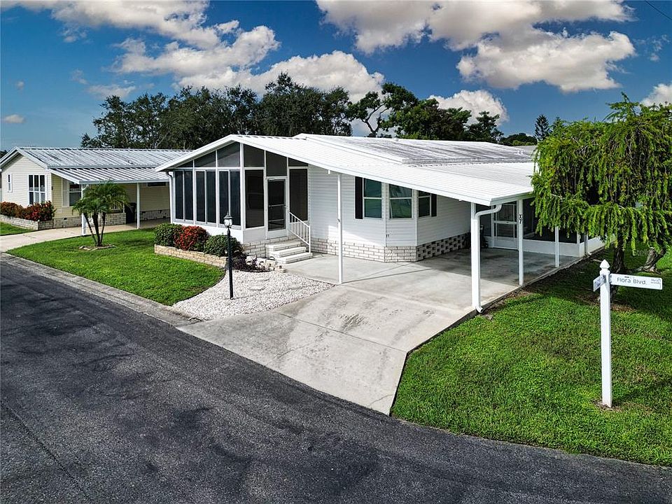 One or more photo(s) has been virtually staged. Charming 2-Bedroom Manufactured Home located in a Vibrant Age Qualified Community. Seller said to included a Home Warranty and looks forward to working with you. This beautifully maintained 2-bedroom, 2-bathroom manufactured home is perfect for those seeking quiet, comfortable, yet active community in Westwinds Village Co-Op. Step inside to discover not one, but two, enclosed lanai living areas, providing plenty of space for relaxation and entertainment. The oversized lanai features windows that let the Florida sunshine pour in—ideal for enjoying your morning coffee or unwinding in the evening. The heart of this home is the spacious open kitchen with an eat-in breakfast bar, perfect for casual dining. You’ll love the seamless connection to the dining and living room area, highlighted by cordless shades and a charming bay window that brightens up the space. Retreat to the primary bedroom, offering ample room for oversized furnishings and a generous walk-in closet to store all your essentials. Situated on a corner lot in a tranquil setting, this home ensures peace and privacy. Enjoy an abundance of community amenities, including a refreshing pool, shuffleboard courts, bocce ball, horseshoe pits, and an active calendar of events—perfect for meeting neighbors and engaging in activities. The clubhouse is a hub of social activity, complete with a kitchen and options for gatherings. Plus, with management staff on duty, you’ll feel right at home. Conveniently located with easy access to Interstate 75, you’re just minutes away from medical facilities, restaurants, grocery stores, worship, and nearby beaches. Don’t miss the chance to make this well-loved home your own—schedule a viewing today and start enjoying the wonderful lifestyle this community offers!