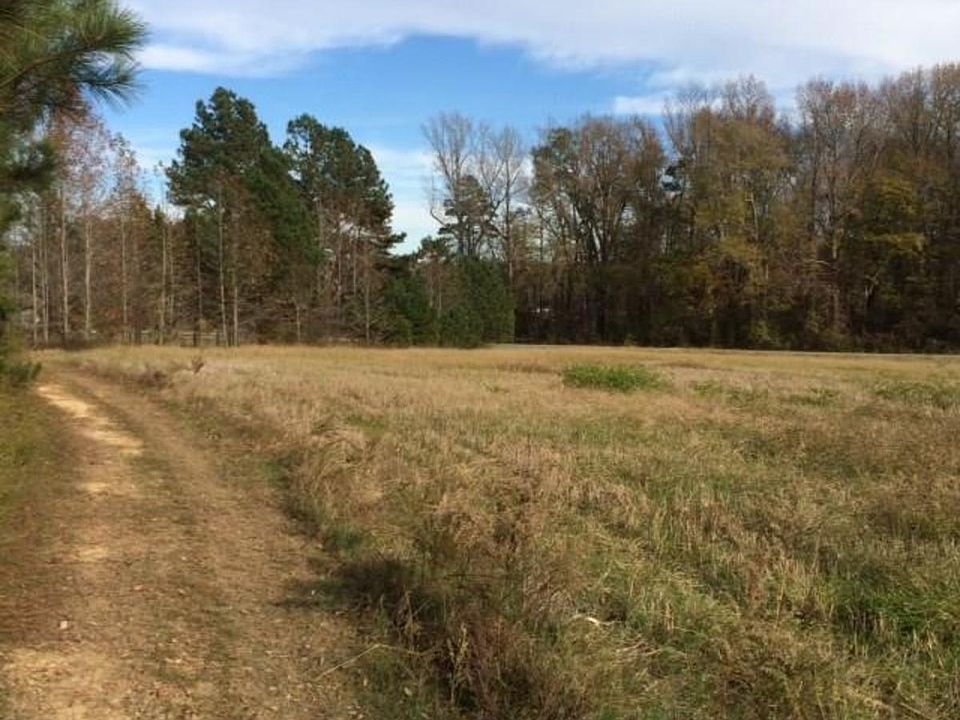 Some hardwoods and some pines. Path goes through edge of field and into the woods. Property has over 350 feet of frontage on Bahama Road.