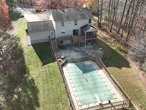 PRIVACY AND SECLUSION ON 30 ACRES: With 30 acres of land, this home offers privacy, tranquility and seclusion. Nestled just outside of town this immaculate home features five bedrooms, three full baths, and a two-car attached garage. The spacious kitchen is equipped with stainless steel appliances, tile flooring and an abundance of cupboard space. The open dining area off the kitchen offers French doors that lead to a large deck. The cozy living room area offers the warmth of a wood-burning fireplace. Located off the living room area you will also find a bonus room that opens to a screened-in porch. First floor laundry room is furnished with a washer and dryer. Upstairs you will find the master bedroom and bath, with an additional three spacious bedrooms and an additional full bath. The lower level walk-out features more living space with a fifth bedroom, a full bath, and a large family room area that walks out to the patio area that overlooks the fenced in in-ground pool. This is a perfect area for entertaining. Don't miss the opportunity to enjoy the tranquility of country living.