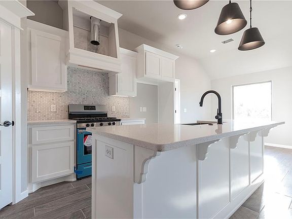 This Brinklee floor plan features 1,580 sqft of total living space, which includes 1,500 sqft of indoor living & 80 sqft of outdoor living. This home has 3 bedrooms, 2 bathrooms & a 2 car garage w/ a storm shelter installed for your family's safety. Living room provides a stacked stone surround corner fireplace, 2 large windows, a ceiling fan, & opens to the kitchen! Kitchen includes a large corner pantry, 3 CM countertops, a large center island, adorning backsplash, & stunning lighting. The primary bedroom is tucked away from the rest & provides a sloped ceiling detail. It also has an attached primary bathroom w/ a Jetta tub, a spacious walk-in shower, & a huge walk-in closet w/ access to the utility room! The outdoor living includes a fireplace, gas line hook up, & cable outlets. Other amenities this home includes are Smart Home Technology, a whole home air filtration system that will make breathing easy, a Rinnai Tankless water heater, R-44 insulation, double glazed windows, & more!