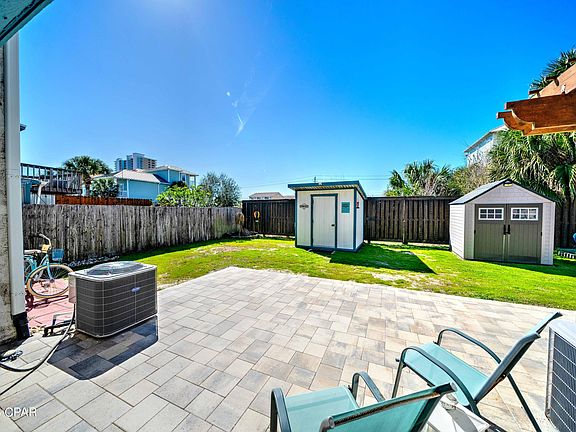 5317 Beach Drive, primary residence or Vacation Rental, regardless this one is the nicest home on the market today in Biltmore Beach! The East end of PCB, quickly has become the hottest market on the beach and this 2bed, 1.5 bath does not disappoint. Turn key investment property, absolutely spotless, updated from top to bottom. Located minutes from the Gulf, emerald green water, sugar white sand, and the best sunsets available! Exterior updates - roof, exterior paint, fenced backyard with covered, substantial paver patio, 2nd story balcony and custom storage building. Walk or golf cart to the beach, restaurants, coffee shop and watersport rentals. Boat ramp is a few minutes away on Grand Lagoon. Gorgeous interior, tile floors, updated kitchen w/ custom cabinets, quartz counters, stainless Samsung appliances as well as ample storage and downstairs half bath. Upstairs find the master suite with balcony overlooking the backyard, Thomas Drive and watch the sunset. Master bath has been fully updated with a tile tub / shower, glass door and custom vanity. Separate guest bedroom with full closet and plenty of natural light. This one checks all the boxes, move in ready for a primary owner or a fantastic investment opportunity. Located close to multiple restaurants, St Andrews State Park, Beach Access #9 and zero updates needed. Don't miss out, come visit today!
