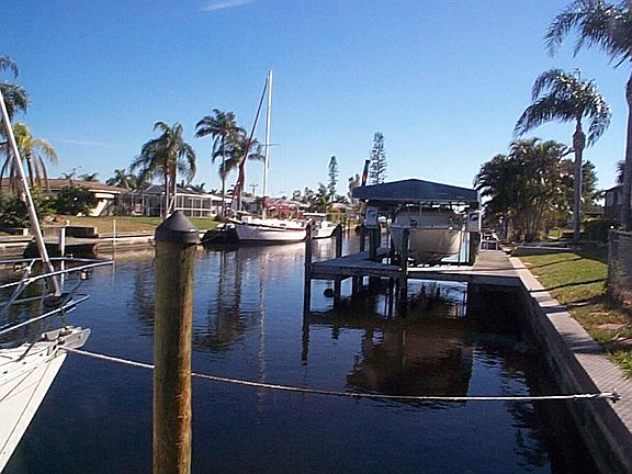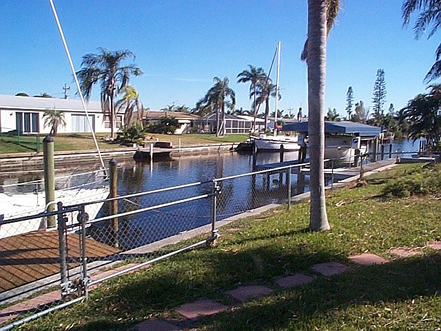 MINUTES TO THE RIVER! Rare 4/3 bedroom DIRECT ACCESS POOL home in desirable Yacht Club. LOWEST PRICED 4 bedroom in Yacht Club! NO BRIDGES TO GET OUT. Bring your sailboat or larger boat. This SAILBOAT ACCESS home is on a great street with lots of newer million dollar homes. This home has great "bones" and offers lots of potential as a remodelling project. Or lock in today's prices, use for a while and build later. Split bedroom plan with 16' TILE on diagonal though out, FENCED yard, DOCK with TIKI, DOUBLE GARAGE, and Floritam with sprinklers. NEWER Refrigerator. ALL ASSESSMENTS in and PAID. Located in the Iconic Yacht Club area of Cape Coral, Close to Yacht Club beach, restaurants, shopping, Downtown Cape Coral, Ft Myers and Sanibel Beaches and RSW international airport. Lush landscape, nice entertainment deck, city water and sewer in and paid. Rented and shown by appointment only. Owners are licensed Florida Realtors.