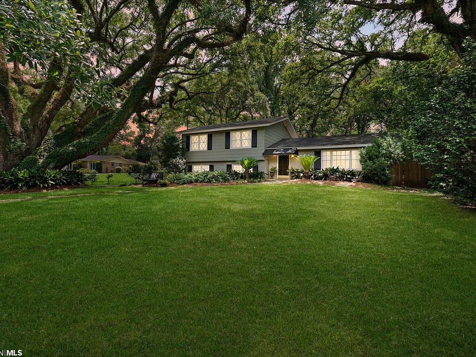 Conveniently located between Spring Hill College and USA with banks, shopping and restaurants all nearby, you will love this location. The front yard is graced by a beautiful, massive live oak and features pretty landscaping. The back yard is private and there’s a nice patio off the dining room to enjoy. The entire house is painted a very neutral, decorative color. The living area has new flooring (per seller) and has a large picture window. 3 bedrooms are located on the main upper level, 2 of which share a completely updated bath with double vanities and walk in shower. The primary bedroom has an ensuite bathroom. The 4th bedroom is downstairs and is currently used as a cozy family room. The half bath, which is also renovated, is nearby. The kitchen features a gas cooktop with separate oven, and the refrigerator which will remain. This is a great home for the price! Agent has a list of updates file. Call your favorite realtor today! Listing Company makes no representation as to accuracy of square footage :buyer to verify.