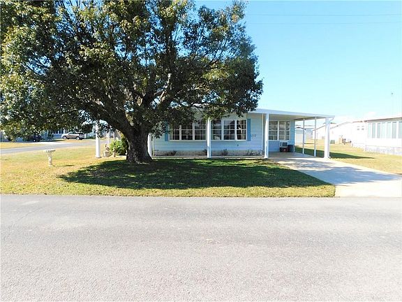 Come to beautiful, sunny Florida and stay for a few months or year around. You will be very comfortable in this lovely, well maintained Homes of Merit home in Betmar Acres active 55+community where you OWN the land! This home boasts many updates throughout. The kitchen was remodeled in 2019 with laminate floor, and new cupboards and fixtures. The dining area which is conveniently located right off the kitchen has new carpet in 2016 and built-in China cabinet. Big windows along the full front of home makes for a bright and cheery atmosphere in the dining and living room areas. The living room carpet was also updated in 2016. The master bedroom has a ceiling fan, carpet, walk-in closet and en suite bathroom which was remodeled in 2017. The master bathroom has a step-in shower, vinyl floor and updated vanity. Bedroom two also has carpet and a walk-in closet. The main or guest bath was remodeled in 2016 and has vinyl floor, tub/shower combo and storage for your linens and towels. A nice addition to the home is the 11x18 Florida room with carpet, double pane windows and was recently ducted to the central heat/air system so you can enjoy this lovely room all year. The Laundry room is located off the Florida room and was also recently ducted to the central system and the floor and door were replaced in 2020. There is a detached 10x10 metal golf cart/storage building with in the back of the home. On a nice sunny, breezy day, you can enjoy the 10x18 carpeted screen room on the side of the home. Probably the two most important updates to the home are the A/C in 2018 and metal roof in 2018. This home is move-in ready, so pack your bags and come on down! Don't forget its near the 27 holes of golf, 2 swimming pools and 2 hot tubs along with 3 clubhouses, a library, walking paths, game rooms (Billiards, Table Tennis, Board Games) miniature golf, enclosed shuffleboard courts, tennis courts, pickle-ball courts, basketball court, Bocce courts, and Bingo. * Additional fees may apply* Call for an appointment today. **Per Seller's discretion, home is not for sale to LLC's or Co-op's.