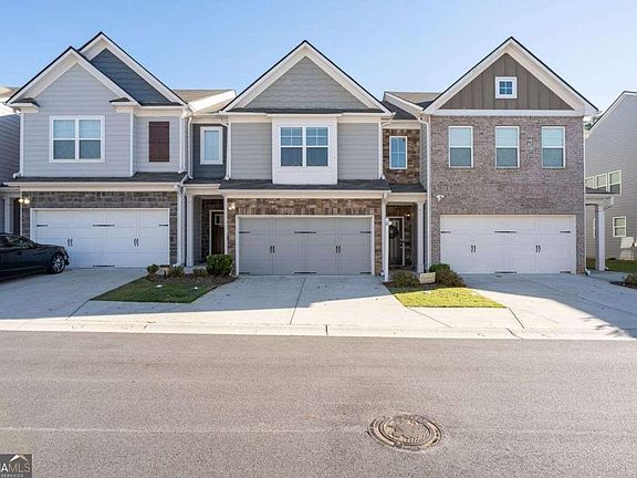 Step into this beautifully crafted townhome featuring a striking exterior with stone and brick accents and a charming front porch that invites you in. Inside, the spacious living room showcases elegant coffered ceilings, gleaming hardwood floors, and a cozy fireplace-perfect for relaxing or entertaining. The open-concept kitchen is a chef's dream, complete with granite countertops, stainless steel appliances, and generous cabinet space. Upstairs, a versatile loft area offers the ideal spot for a home office, media room, or quiet retreat. The luxurious master suite includes a spa-like en-suite bathroom with dual vanities and a walk-in closet. Additional features include a two-car garage, well-maintained landscaping, and abundant natural light throughout the home. Located in a desirable Fairburn community, this home combines modern amenities with timeless charm. Don't miss your chance to make it yours!