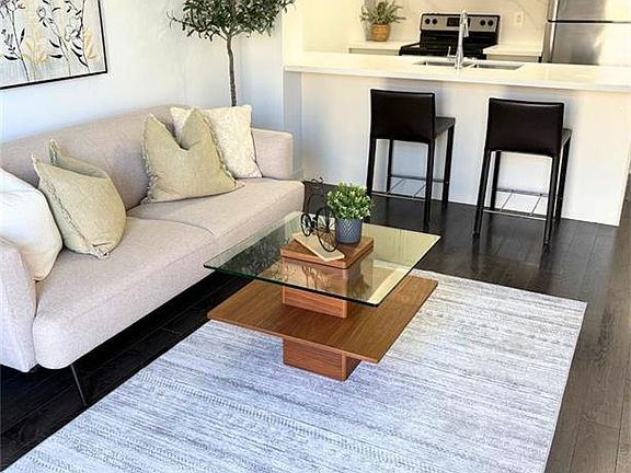 Juliette balconyOpen concept floor planContemporary lobbyBeautiful furnishingsModern fireplaceLarge windowsUpgraded kitchen