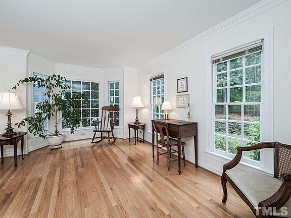 Well maintained home on .69 acre wooded lot backing to the Hilltop Needmore Town Park & Preserve. Favorite features: site-finished hardwoods & ceramic tile in every room but bonus; granite in kitchen & baths; huge bonus room above oversized garage; spacious walk-up attic storage; formal living rm would make great home office/classroom; no HOA or town taxes. Very convenient to shopping/dining in Fuquay-Varina, Holly Springs, & Cary.