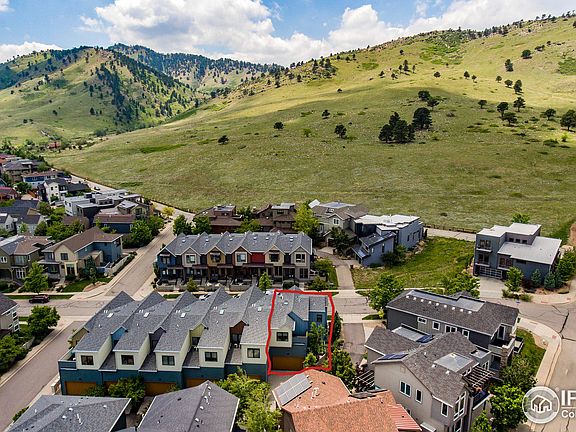 Stunning END UNIT Dakota Ridge rowhouse mere steps from Hogback Ridge Trail and miles of open space. This special property invites natural light and wonderful views w/ large windows on multiple sides. TWO outdoor spaces for relaxing after a hike. Kitchen upgraded recently to include new quartz counters, backsplash, Kitchen Aid appliances & new lighting. Fabulous master w/ more views & vaulted ceilings. Updated en suite bath offers two sinks, soaker tub, new tile in shower, walk-in closet. 3rd bedroom w/balcony is perfect for a work from home space. Fully finished basement w/ full bath and large windows. Two-car attached garage. Truly Boulder living at its finest. Minutes from downtown and endless food/shopping options in Boulder's north end.