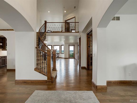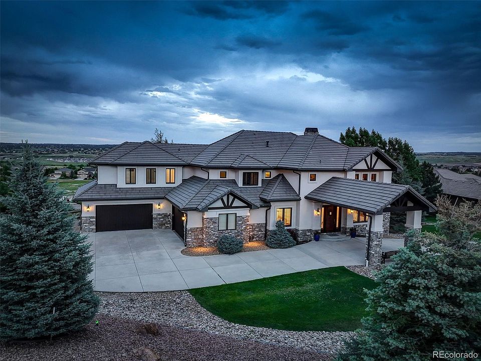 Nestled on the 2005 Parade of Homes cul-de-sac, this elegantly remodeled two-story stunner will instantly instill a feeling of home. A welcoming porte-cochere entrance and tasteful Colorado landscaping are the height of luxurious elegance. Step through the impressive entrance, where your eyes will be drawn to a grand staircase and luminous chandeliers under high ceilings.