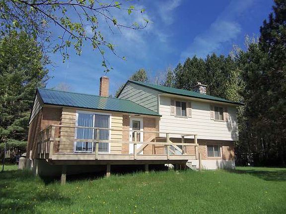 Grand Portage - You have End of Road privacy & quiet setting at this 4-bedroom, 1 1/2 bath home on Grand Portage Lake. Features a living room with wonderful view of the lake, patio doors that lead to the lakeside open sun deck & plenty of room for BBQing & patio furniture. Has dining area, kitchen w/open pass-through & sturdy wooden cabinets, 3 bedrooms, full bath. Lower level has family room w/fieldstone fireplace, a bedroom and half bath, sauna, laundry area, storage area & mechanicals. There is plenty of room for your toys with the 2 garages! The 42' x 28' garage has a two car overhead door with the remaining half all for storage for your recreation items! The second garage is a 2 car made of cement block and has room for extra storage. All this sits on 2 acres of level land with towering pines & 200 feet of firm bottom, sandy, fisherman shoreline. Located on ATV / Snowmobile trail. Seller Financing Available! $350,000 for the home & two garages, or $299,900 for just the home.