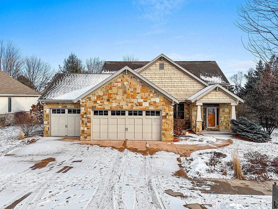 Discover the perfect blend of style and comfort in this impressive Prairie/Craftsman style home. This property features rich hardwood floors, an open-concept design with a grand kitchen island, granite, a farm sink & other high-end finishes. A sunlit three-season room off the dining area leads to a cozy well landscaped & hardscaped patio area, complete with a hot tub, ideal for unwinding or entertaining. The lower level of this home offers a plethora of options, presently featuring a Family rm, exercise rm, 5th bdrm & a full bath. Come enjoy this charming neighborhood, conveniently located near the Fox Valley Lutheran High School & a short walk to Plamann Park. Whether it's quality craftsmanship or prime location you’re after, this remarkable residence is sure to impress.