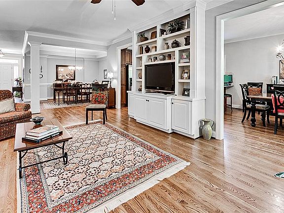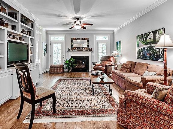 Wonderful townhouse with MANY EXTRAS, HARDOOD floors on entire first level, CUSTOM BOOKCASES and cabinets in great room. Gas logs. Primary and second bedroom on first floor. Primary has large shower, double vanity, walk in closet. Kitchen with extra serving bar, pantry, granite, recessed lighting and under counter lighting. Laundry room with window, sex upper cabinets and base cabinet for extra storage. Upstairs has bedroom with SITTING AREA and bath and walk in closet. PLANTATION SHUTTERS. Neutral decor. INCREDIBLE AMOUNT OF WALK OUT STORAGE.