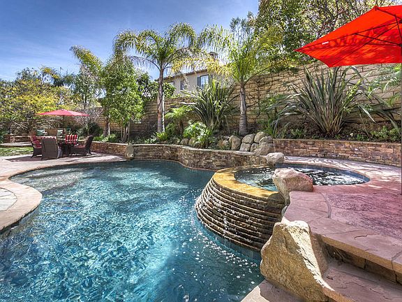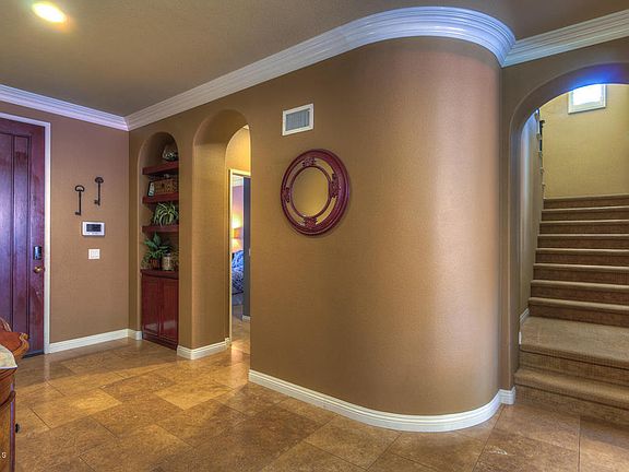 Beautiful Highly Desirable Pool Home in Gallery at End of Cul-de-sac. Sought-After Floor Plan w/5 Bedrooms and 3 Baths. Upgrades Include Gorgeous Travertine and Wood Floors, Crown Molding, Stylish Window Treatments & Light Fixtures, Designer Paint & Carpet, Built-ins. Owned Solar. Living Room & Formal Dining Room w/Wood Floors. Downstairs Bedroom & Bath. Chef's Kitchen w/Granite Counters, White Cabinets, Big Island, Walk-in Pantry, Stainless Steel Appliances. Mud Room off the Kitchen w/Built-ins. Spacious Family Room w/Raised Hearth Fireplace & Built-in Media Center. Large Master Suite w/Views, Luxurious Bath w/Quartz Counters, Dual vanities, Shower & Tub, Big Closet w/Custom Organizers. 3 Additional Bedrooms Upstairs. Incredible Entertainer's Private Yard w/Sparkling Salt-Water Pool w/Volcano Feature, Firepit, Speakers, Lush Landscaping & Mountain Views. Alarm System. 3 Car Garage. Great Curb Appeal & Prime Location. Must See!