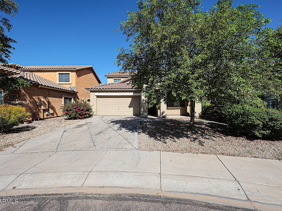 Upstairs, you will find four spacious bedrooms and two full bathrooms. A convenient powder room/half bath is located downstairs for guests. Enjoy the Arizona weather in the private, landscaped backyard, complete with a covered patio for outdoor dining and relaxation. This home is a must see