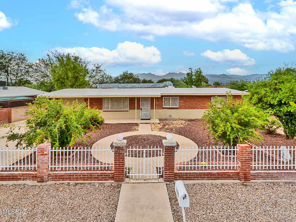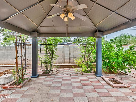 Mid-Century Ranch Style home on a cul-de-sac on well maintained street. Ideal location in Central Tucson. Close to TMC, shopping, U of A. Amazing remodeled bathrooms and kitchen with granite countertops and stainless steel appliances. Spacious living and dining area with bonus rooms. This home has the possibility of 2 home offices. One off the primary with its own Arizona Room. The backyard is low maintenance with great fruit trees and shaded gazebo with a ceiling fan plus a storage shed. Front yard is completely fenced with space for an RV plus a garage. Low maintenance and secure with decorative wrought iron security bars. Enjoy pomegranates and Chinese apples from the mature trees. Come see what this beautiful home has to offer you.