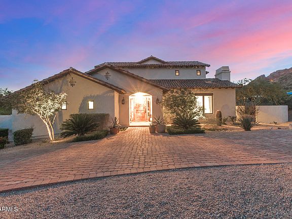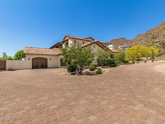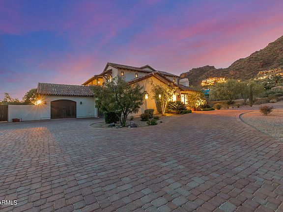 Beautifully renovated 2015 Modern Spanish Colonial with extraordinary construction, design & finishes. This amazing home is set on just under an acre on Camelback's south slope. Majestic mountain and city views surround the home. Inside, discover an exquisite blend of tile & wood flooring, lighting & plumbing fixtures. Multiple entries/exits, & exposed wood beams. The formal dining has access to the wine cellar! Master plus one bedroom on main level & 3 upstairs with add'l family/game room with walk behind wet bar & large patio overlooking backyard and city view. The heart of the home is the lovely kitchen with marble counters and huge island. Steam shower, California Closets & custom window treatments thru-out. See extensive list of improvements. Elegant home.