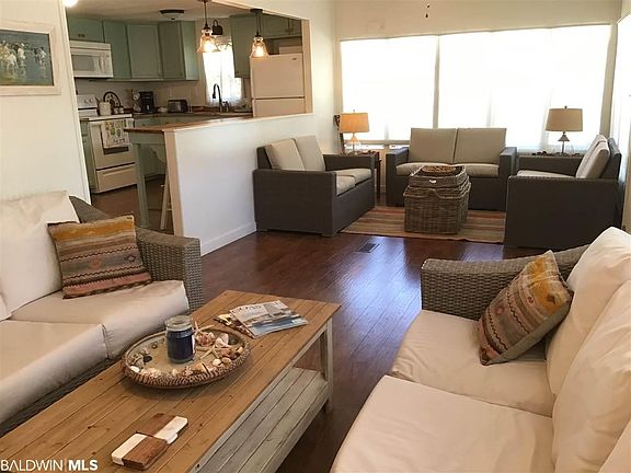 Sought after Bear Point, this one is move in ready for under $200k. Remodeled with spacious living/kitchen open floor plan and comes beautifully furnished, including queen bed in sleeping area 1, twin bunks in area 2 and a daybed with trundle in area 3. (Due to remodeling, closets are not enclosed). Private deck and outdoor shower, detached workshop/with roll up door. Optional Bear Point Civic Association membership available for $130 a year including boat launch, beautiful white sandy beach, play park with swings, horse shoes and a fishing pier. Furnished and in Flood Zone X.