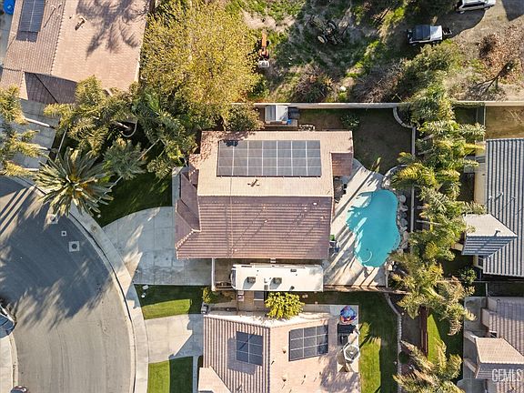 This beautiful home will check all the boxes! Located in desirable SW Bakersfield near schools, shopping and parks, this charming home features 3 bedrooms, 2 baths, and office. With 1855 sq ft of living space, this home has it all... The open floor plan is perfect for gatherings and entertaining. The spacious kitchen overlooks the dining area and large living room and fireplace. The large kitchen island and beautiful tile countertops are just a few of the added features of the large kitchen in this home. The large primary bedroom and bath feature walk in shower, double closets and sliding door giving you access to the breathtaking view of the lush backyard and pool. No need to worry about high electric bills, this home comes with PAID solar! You can also save money on storage bills for your RV, as the home comes with ample space for your RV and plug in access. Indoor laundry room, lots of cabinets and closets for storage, ceiling fans, block wall, and much more!