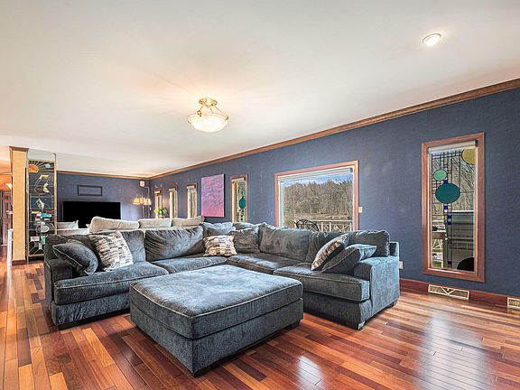 - Bar, Sauna, Walk-In Closet(s), Storage, Kitchen Island, Eat-in Kitchen, Crown Molding, Cathedral Ceiling(s)