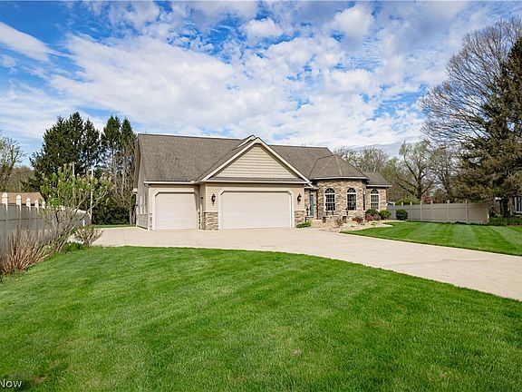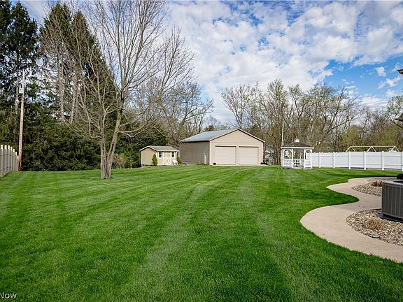 Introducing your dream home: a picturesque 3 bedroom, 2 1/2 bath ranch nestled on a sprawling 1.35-acre lot with FREE GAS. Boasting an attached 3 car heated garage and a huge 42' x 46' outbuilding complete with utilities, this property offers unparalleled versatility and convenience. Step inside this former builders home to discover a haven of quality craftsmanship and modern elegance. The main level greets you with an open floorplan, featuring a kitchen adorned with brand new appliances, granite countertops, and Schrock cabinets. There is a formal dining area, ideal for hosting gatherings and a dinette that is perfect for a home office. The heart of the home awaits in the inviting great room with cathedral ceiling, a cozy gas fireplace, and hardwood floors. There are sliding glass doors leading you to step outside onto the amazing covered patio, overlooking the sprawling backyard oasis, a perfect setting for entertaining family and friends. Retreat to the luxurious owner's suite, offering dual walk-in closets and a pristine ensuite bathroom with a brand-new tiled walk-in shower. There are two more generously sized bedrooms, another full bathroom, and a convenient first-floor laundry room and 1/2 bath complete the main level. Descend to the lower level to discover a finished rec room, adding over 900 sq. ft. of versatile living space. There is an unfinished area that provides ample storage and the potential for future expansion and it's pre-plumbed for an additional full bath. The basement has access to the attached garage for your convenience. Outside, the private backyard features the 42' x 46' outbuilding with 17-foot ceilings, electric, water, and gas connections, ideal for hobbyists, storage, or workshop enthusiasts. Additional amenities include a charming garden shed and a gazebo. Nestled in the coveted Canton South School District, this remarkable home offers the perfect blend of tranquility and convenience, an opportunity not to be missed.