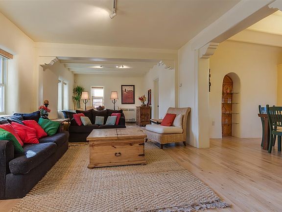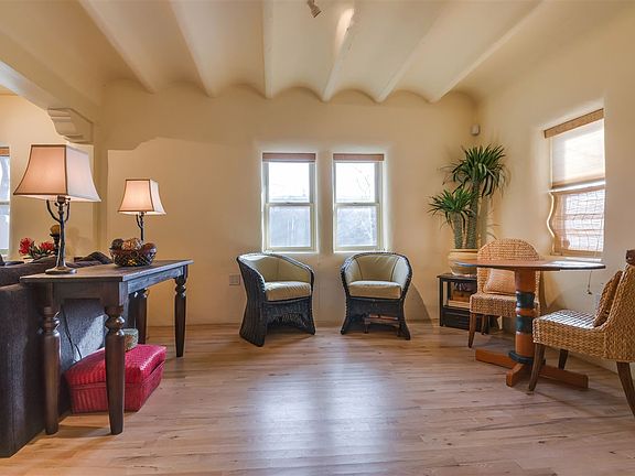 Perfectly located home just a few blocks from everything! A Compound for the making with included extra lot!! Classic pueblo design and available fully furnished and quipped. Great opportunity for use as a vacation rental. Large guest bedroom and very spacious master suite. Upstairs studio or den or spare bedroom. Private walled yard and an undeveloped walled lot which can be used for a guest casita, garage and/or an independent separate residence. Private off street location for quiet relaxation. Turnkey ready and easy to show. Across Santa Fe River park space. Truly unique and very attractive.