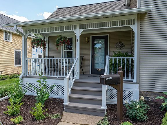 Stunningly modern home with classic charm just blocks from Circus World Museum, The Baraboo River Walk, and Historic Downtown Baraboo! This home has been completely remodeled and not a detail missed. Enjoy your morning coffee on the covered front porch, or entertain your guests on the enclosed back porch with a walkout to the large brick patio. The main level features a bright and airy living room, newly remodeled eat-in kitchen, large first floor bedroom and bathroom with laundry. This floor plan creates easy living all on one floor! The second level contributes two more spacious bedrooms. Updates include roof on house in 2019, roof on garage in 2021, furnace & water softener 2014, kitchen & bathroom remodel 2016, water line replaced to remove lead pipes in 2015, basement painted in 2021.