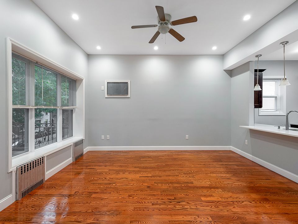 Welcome to your new home! This spacious 1,100 sqft apartment, located on the second floor of a lovely two-family house, offers the perfect blend of comfort and convenience. Key Features: - Hardwood Floors Throughout: Beautiful hardwood flooring adds warmth and elegance to every room. - Ample Storage: With 4 closets you'll never run out of room for your belongings. - Modern Kitchen: The kitchen boasts stunning quartz countertops and comes equipped with stainless steel appliances, including a dishwasher. - Bathrooms: Enjoy the convenience of a full bathroom and an additional powder room. - In-Unit Laundry Hook-Up: Washer and dryer hook-ups are available for your convenience. - Bright and Airy: Plenty of windows ensure ample natural light throughout the apartment. - High Ceilings: High ceilings create an open and spacious feel. - Outdoor space: Enjoy a Private terrace. - Security: A video intercom system adds an extra layer of security and convenience. Additional Information: - Utilities: Heat and hot water are the tenant's responsibility. - Pets: Cats are welcome, but unfortunately, no dogs are allowed. This apartment is perfectly situated in the heart of Brooklyn, offering easy access to local amenities, public transportation, and vibrant city life. Don't miss out on the opportunity to make this charming space your new home.