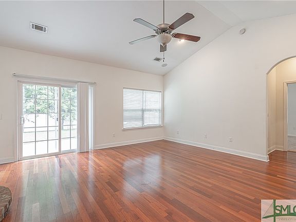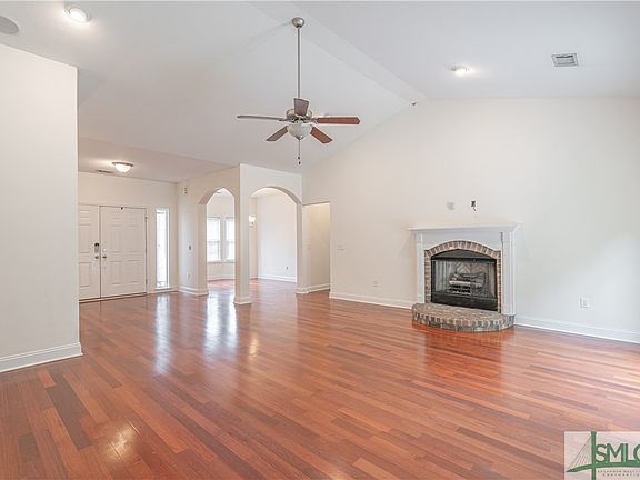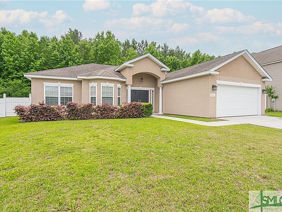 Experience the convenience of a fantastic floor plan complemented by fresh paint and new carpeting! This expansive layout features a formal dining room and beautiful hardwood floors. The living room showcases an impressive, vaulted ceiling and a fireplace with a charming brick hearth. The kitchen is open and equipped with granite countertops, a double oven, a pantry, and even a refrigerator! Privacy is ensured with the split bedroom plan, providing separate spaces for the owner and guests. The owner’s suite offers a spacious closet and a luxurious en-suite bathroom complete with a soaking tub and separate shower. This home is ready for you to move in, with even a washer and dryer included. The fenced backyard is perfect for both children and pets to enjoy and the home backs up to HOA land. Enjoy the community pool, clubhouse, playground, and more. All of this conveniently located within close proximately to Pooler, Gulfstream , I-95, and Savannah.