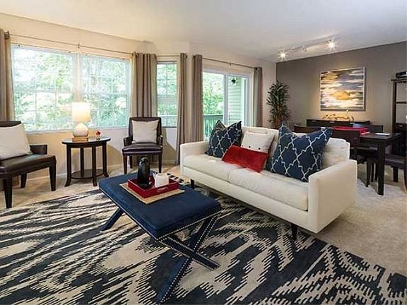 Does it include stainless steel appliances, in-home washer and dryer, a top floor home with vaulted ceilings, or maybe even a beautiful view? Here at Avalon Burlington, you can have all of the above and MORE. Our 995 square foot 2 bedroom is everything that you've been looking for. It is perfectly cozy with a traditional-style layout and gorgeous bay windows that overlook the wooded area of Burlington. Top floor apartments have an additional window in the living room that allow maximum sunlight into the apartment and the vaulted ceilings in the master bedroom and living room make the apartment feel even more spacious. Flexible lease terms offered. Contact leasing office for details.