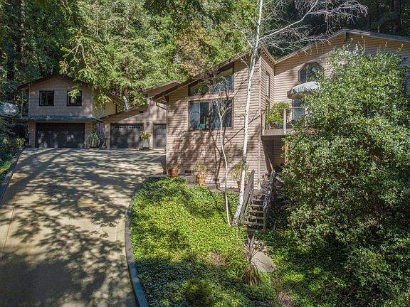 WOW! REDUCED 50 Grand! Welcome home to this well cared for, Beautiful 4 br 3 ba, 2154 sq ft home on 2.62 acres, allowing for privacy. 4 car garage with a studio unit w/bathroom above one side & a 2 room unit above the other side. (may be possible to combine to make as an adu or keep as is), Cathedral Ceilings, large open living room with pellet stove, formal dining room, Kitchen with stainless steel appliances, Amendioum Brazilian Hardwood floors, heated mirror triple pane windows in kitchen, dining rm and mstr, generac 20KW generator w/auto transfer switch. Well w/ozonator and 5000 gal water tank, beautiful deck off kitchen and dining rm w/views of the trees, 3 beautiful bedrooms in main house w/2 full baths with a nice family room off bedrooms,plus studio unit w/bathroom above garage. Plenty of parking for an RV, cars, etc plus the 4 car garage.Great commute location, easy to town, Henry Cowell State Park, Santa Cruz beaches and all that Santa Cruz offers.They are ready to go!