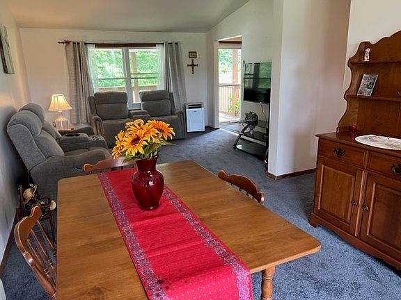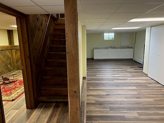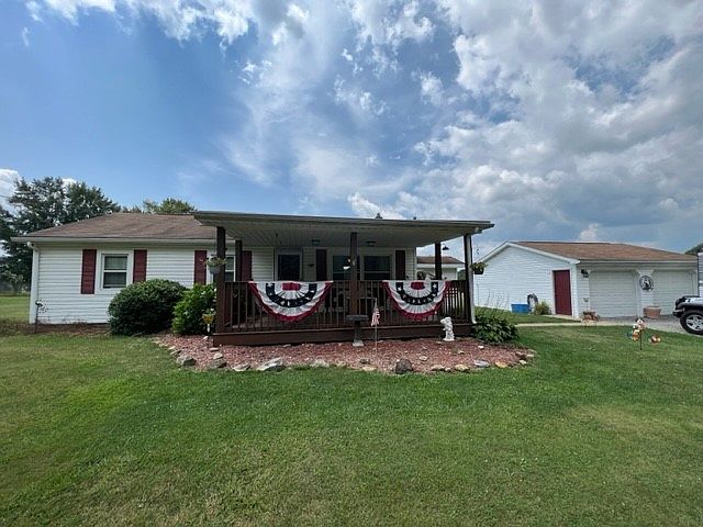 Picturesque homesite on one acre of level land, peacefully located across from 100 acres of woods. Enjoy peace, nature and a cup of coffee from the beautiful front porch of this ranch home. Brand new carpeting in the living room, dining room and hallway, newer carpeting in the bedrooms, updated bath, glass door to the spacious, back pergola patio and large, level backyard with wooden swing and firepit. The basement is a DREAM! Completely gutted and rebuilt with new insulation, drywall, flooring, counter, sink... EVERYTHING is new. Off of the main basement which includes a spacious area for entertaining and laundry, there are two rooms which could be used as a bedroom, office and/or theater. The 2 car detached garage has electric throughout as well as gas heat. Lots of storage as it is big enough for 2-4 vehicles. Country feel, yet so close to 422.
